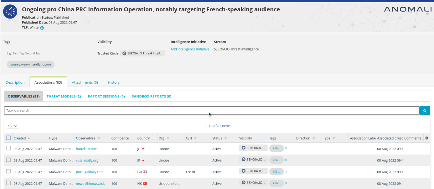 Jej baza danych jest stale aktualizowana przez setki źródeł threat intelligence oraz wzbogacana przez analityków Sekoia, co zapewnia aktualność i wysoką jakość danych.